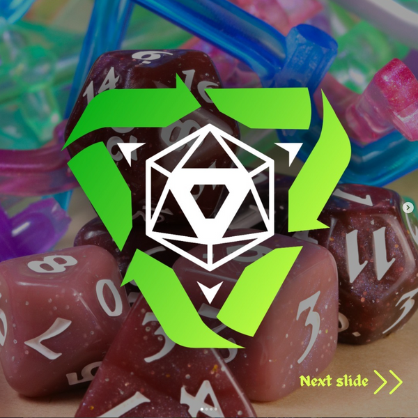 Rerolls are recycled dice with a purpose! A lot of plastic is left behind in the acrylic dice making process, and that has never sat well with us. It took time and research, but we’ve finally found a means to recycle that plastic into something new.