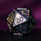 Why have one chromatic dragon when you can have them all? This metallic rainbow set is the perfect addition to any dragon’s hoard. With black edges and numbers with scorched rainbow fill, Wildfyre has a striking look that makes it Drakona’s version of our Dark Matter and Dark Nexus sets. This dragon queen’s treasure is perfect for your dragonborn champion or your chromatic dragon villain.