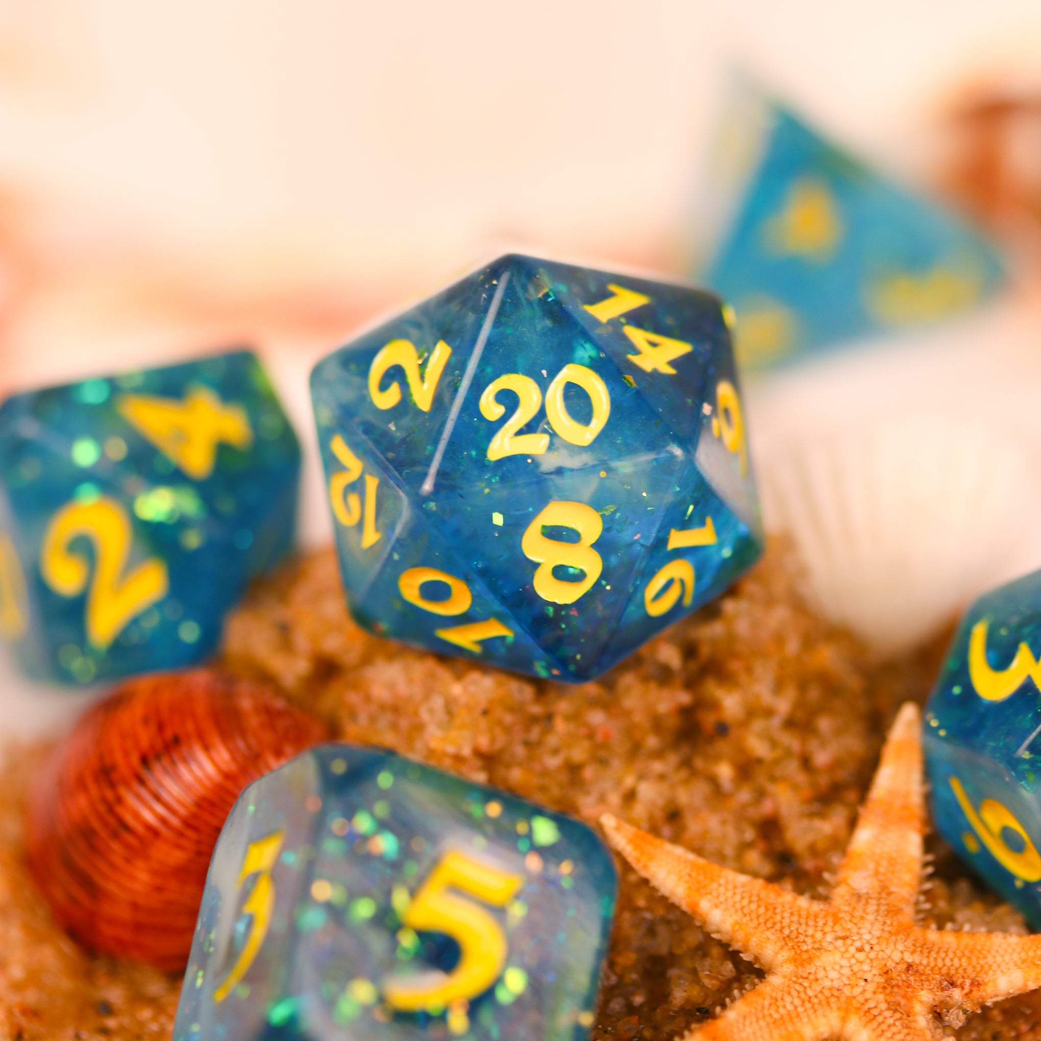 Die Feenwildnis kann gefährlich sein, zumindest ohne Führer. Diese blauen Würfel sind perfekt, um Ihnen durch die Wendungen Ihrer Abenteuer zu helfen. Ihre goldenen Flocken und die gelbe Tinte verleihen jeder Kampagne oder jedem Charakter einen Hauch von Leichtigkeit und sorgen mit Sicherheit für das Chaos der Feenwildnis, wann immer Sie es brauchen.