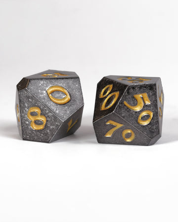 A standard 7-dice D&D set actually boasts two ten-sided dice: a D10 and a "percentile die". The D10 ranges from 0 to 9, while the other leaps from 00 to 90, marking increments of ten.