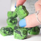 • Acrylic dice with green and black swirl effect unique to each set