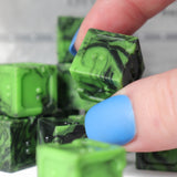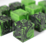 • Acrylic dice with green and black swirl effect unique to each set