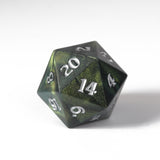 Dark forces stalk the halls of the Castle once more! These shimmering, sharp edge dice feature a deep green sparkle and ethereal silver inking. These are sure to bring powerful forces to your tabletop, and make dazzling additions to any dice collection.