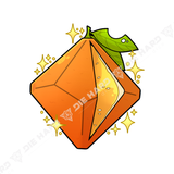 A sticker depicting a d10 as an orange.
